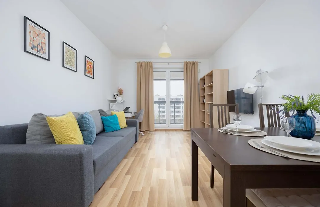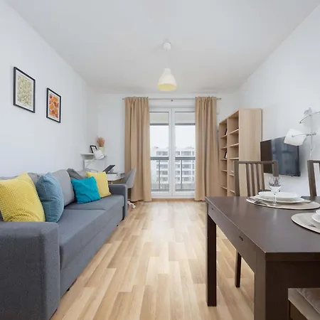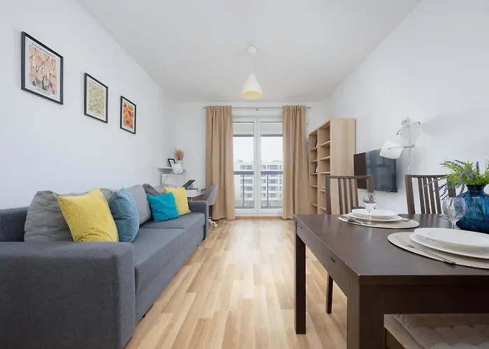 Bright Apartment With Parking Near The Pge National Stadium By Noclegi Renters includes a balcony, a seating area, and a living room with a washing machine for utmost comfort. The apartment is equipped with a bathroom that features a hair dryer, complimentary toiletries, and bath sheets. You'll also come across a separate toilet.